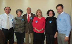 Dr. Eduardo Bianco, director para América Latina de la Alianza para el Convenio Marco para el Control del Tabaco, senador Ricardo Lagos Weber, Sonia Covarrubias y Lezak Shallat, de Chile Libre de Tabaco. Junio de 2014.