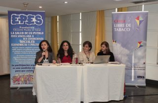 María Teresa Valenzuela, académica de la Escuela de Salud Pública de la Universidad de Chile e integrante de Chile Libre de Tabaco, expuso sobre las medidas que contempla el proyecto de ley de tabaco que se tramita en el Parlamento, el congelamiento legislativo de la iniciativa desde julio de 2015 y la interferencia de la industria tabacalera para bloquear las políticas públicas de salud.
